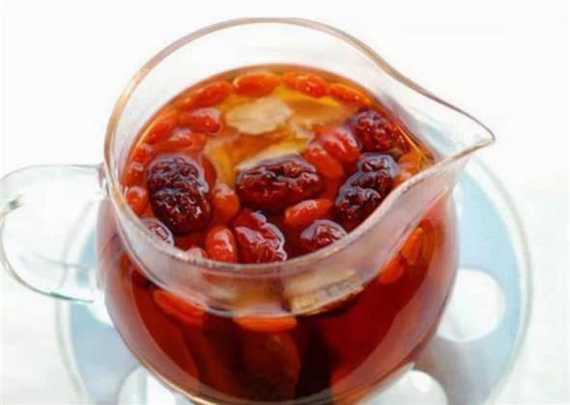 紅棗枸杞茶取枸杞一小把(約20~30粒)、紅棗3-4粒。直接將枸杞和紅棗放入玻璃杯中,以開水沖泡服用,或者用水煮沸後服用。